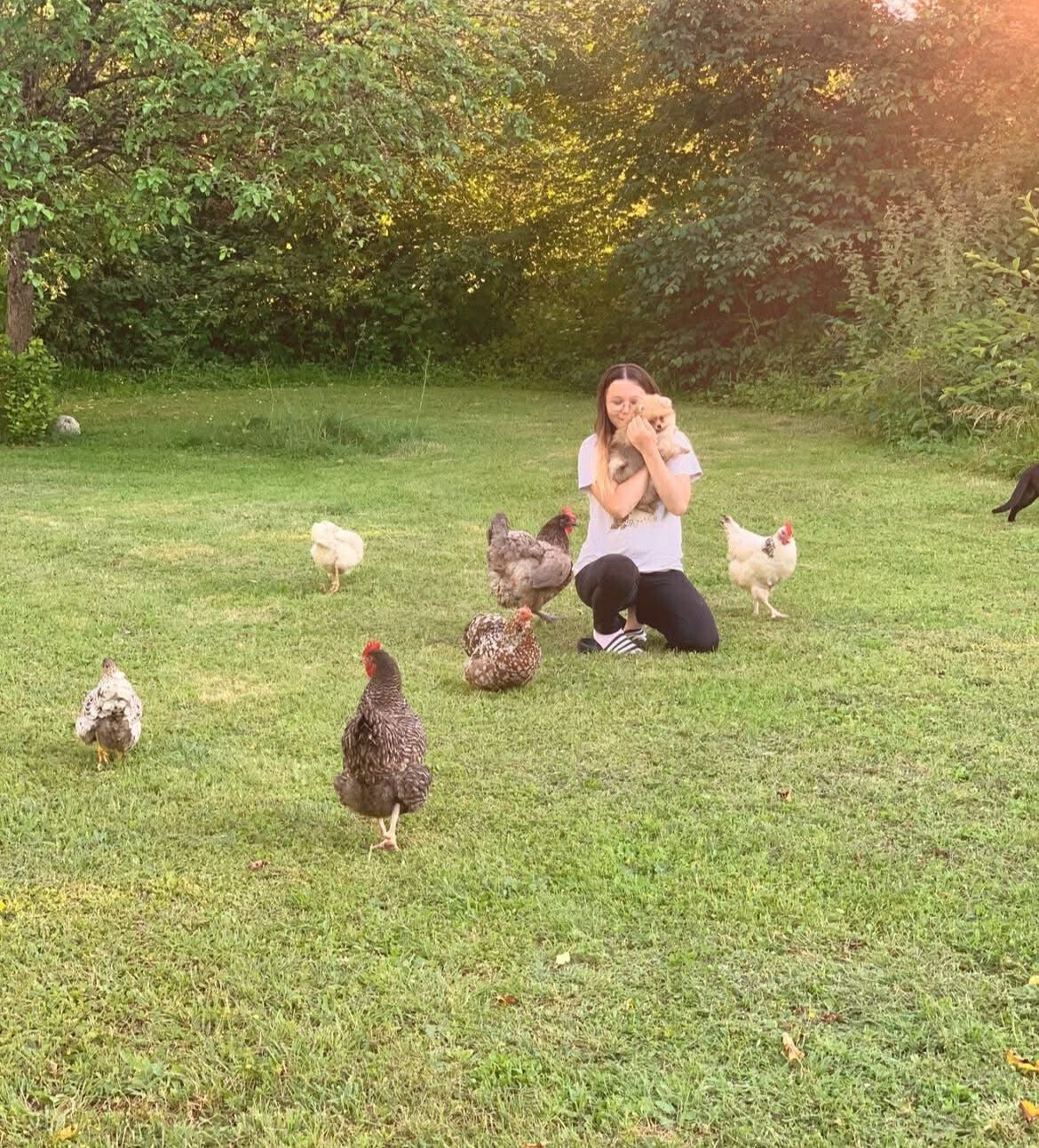 Ils évoluent aussi aux cotés d'autres animaux; chiens adultes équilibrés, chats, poules, ce qui leur permet d'apprendre très tôt a cohabiter calmement avec différentes espèces.